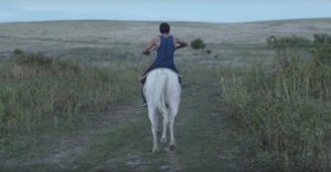 La pantalla está en negro y se escucha a un caballo relinchar, luego se lo ve cabalgando al joven veinteañero Johnny Winters (John Reddy) en un hermoso corcel blanco, algo arisco. Hay un magnífico juego con los planos entre el caballo y el jinete. Johnny tiene los rasgos característicos de los aborígenes del norte de los Estados Unidos. Se escucha su voz en off reflexionando sobre el animal, su parte noble y su parte salvaje y de la importancia de domesticarlo pero no quebrar su espíritu. Al fondo se ve un hermoso atardecer naranja, en las planicies de Dakota, mientras el jinete continúa tratando de dominar al animal.