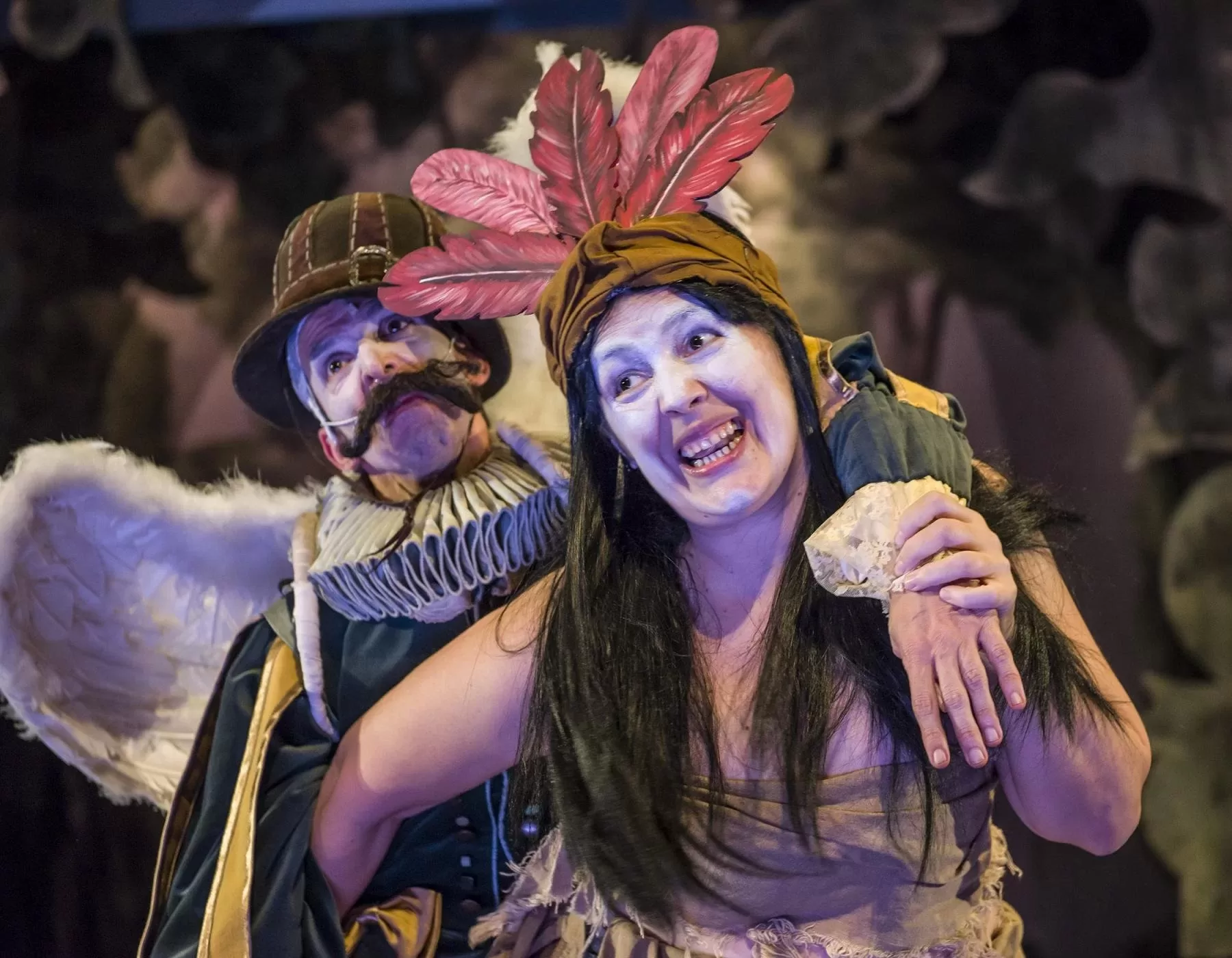 Al haber dos líneas argumentales implica que haya varios personajes y esto es uno de los puntos más loables de la pieza: su elenco. El cuarteto protagonista recorre una historia compleja y dinámica dejando hasta la última gota de sudor yendo y viniendo con personajes muy distintos entre sí. A esto se le suma un nivel más de complejidad, los momentos musicales que, si bien no abundan, resaltan automáticamente gracias a la técnica vocal de los actores especialmente luego de una extenuante performance física.