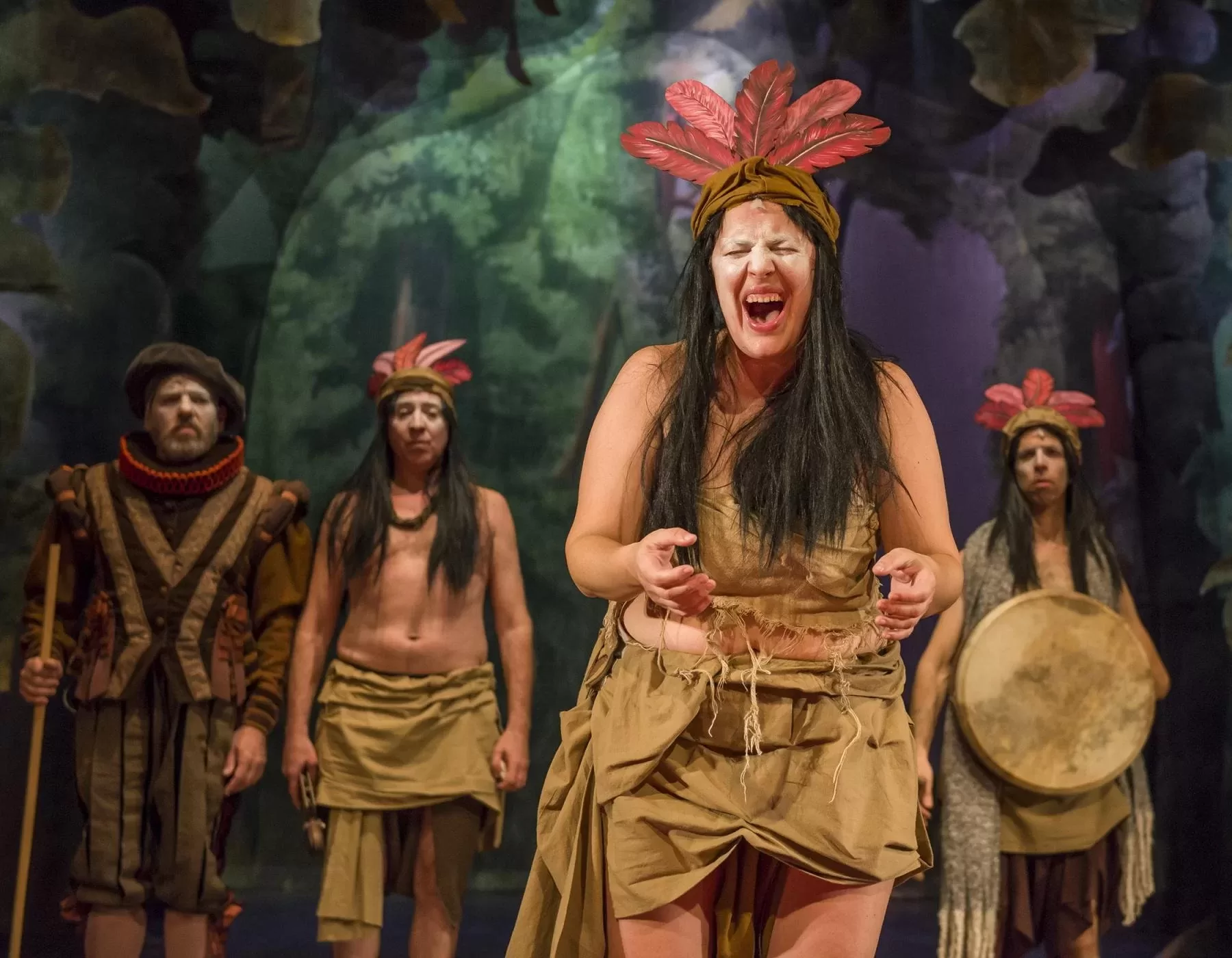 “El entenado” propone una obra dentro de una obra con dos líneas temporales en un mismo texto, ambas conectadas por un evento en particular. Un hecho histórico real contado a través de un efecto cascada. Durante el año 1570 una compañía de teatro española se presenta constantemente en diferentes ciudades contando la travesía vivida por uno de sus integrantes, quien el en año 1516 fue parte de la expedición de Juan Díaz de Solís “descubridor” del Río de la Plata. Este hombre fue el único sobreviviente del grupo luego de que el resto fuera asesinado (y comido) por lo aborígenes. Varios años después de ser liberado, por razones de fuerza mayor, se une a esta compañía teatral que lo convencen de contar su historia. Justamente la obra se desarrolla durante una de las funciones, la última antes de ir a Florencia (Italia) contratados por el duque.