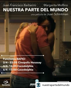 A lo largo de la historia, la cual empezó el siglo pasado, el BAFICI fue creando y acompañando carreras de directores. Hizo de vidriera para la mayor parte de la carrera de Juan Schnitman, quien en esta edición presenta su última película, “Nuestra parte del mundo”. Queda una última función el domingo 6 de abril a las 15:50 en el cine Cacodelphia.