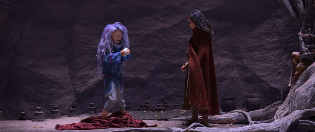 Raya está curtida con respecto a la aventura y los desafíos que se le presentan, tanto en combate como en ingenio, esto le da un ritmo más ágil a la película, ya que Raya no necesita consejos para manejarse en el mundo, ya todo lo tiene adquirido y aprendido. Estamos hablando de una adulta, no de alguien que recién sale al mundo, sino de una guerrera que decide cargar con una mochila muy pesada por el bien de todos, sabiendo que a pesar de que los que se oponen presentarán un gran peligro, también intentará mostrarles que no hay que estar ciego.