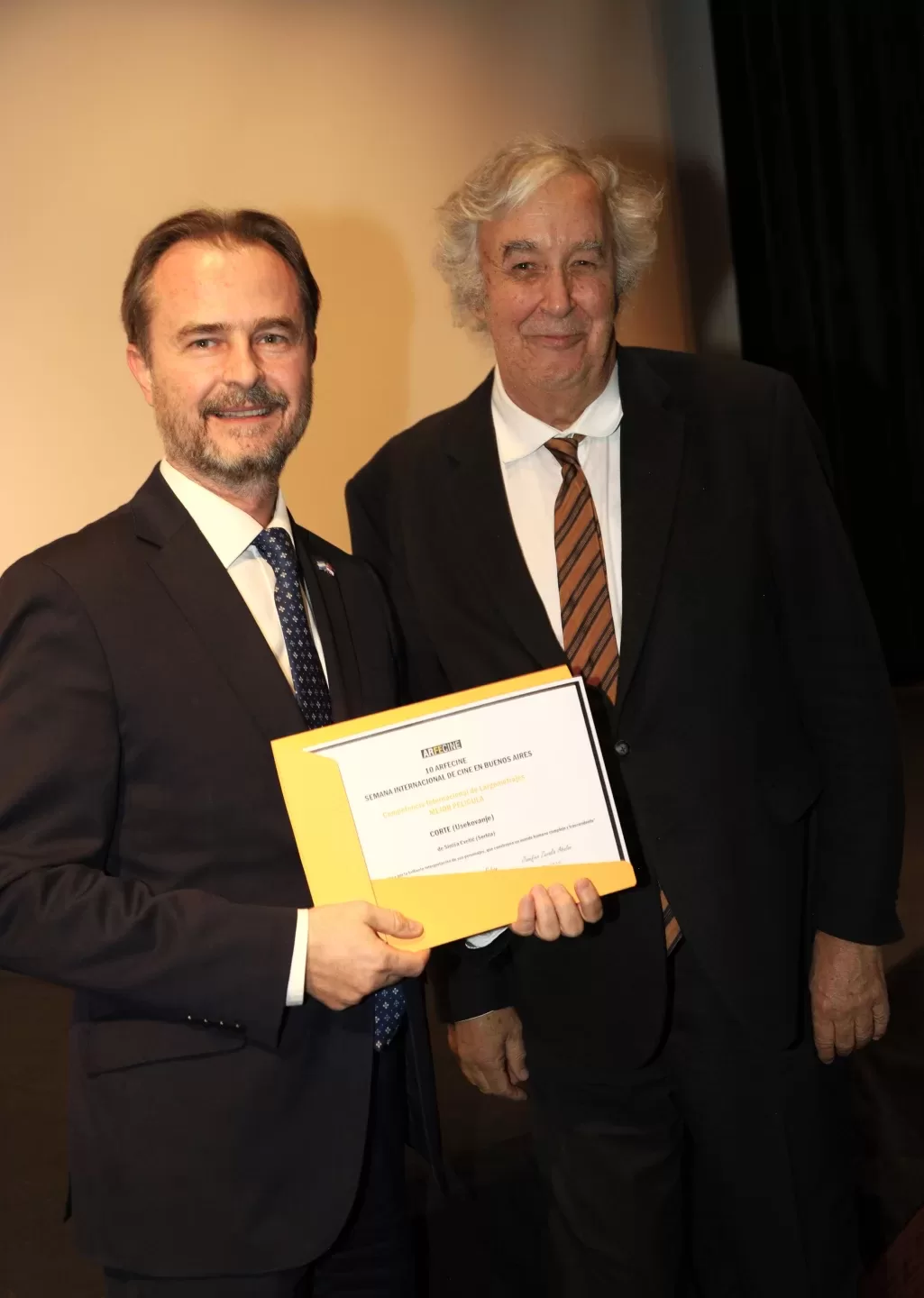 La Entrega de Premios y la proyección de esta obra se realizaron en el salón Auditorio de la Alianza Francesa en Buenos Aires, que contó con la colaboración de la Fundación Aldea de las Luces. Luego de las palabras de agradecimiento y en cierta forma de balance de esta nueva edición del Festival, a cargo de su director Pablo De Vita, quien dio la bienvenida a las delegaciones y al público presente, brindó una síntesis de las cinco intensas jornadas donde además tuvieron lugar las presentaciones de Serbia, El Salvador, las bases de los premios Radio France International- Radio Cultura dedicados al cortometraje, el anuncio del congreso Art-Kine (co- organizado junto a la Universidad de Salamanca y la Universidad de Viena).